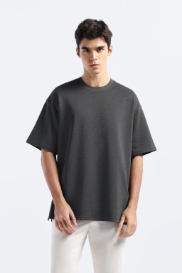 - Kaos oversized fit lengan pendek dengan bahan bertekstur garis horizontal