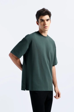 - Kaos oversized fit lengan pendek dengan bahan bertekstur garis horizontal