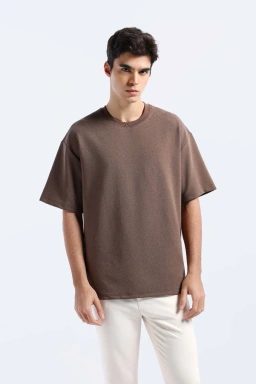 - Kaos oversized fit lengan pendek dengan bahan bertekstur garis horizontal