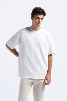 - Kaos oversized fit lengan pendek dengan bahan bertekstur garis horizontal
