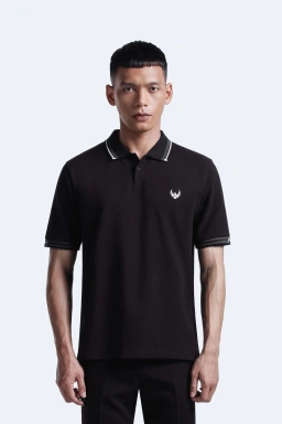 - Kemeja polo dengan aksen detail pada kerah dan lengan, dan detail bordir dengan siluet burung elang yang menambah panampilan prima