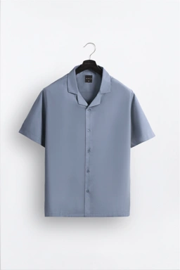 - Kemeja dengan kerah terbuka dengan ukuran relaxed fit