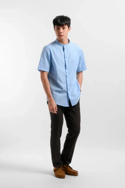 - Solid color fabric collarless shirt