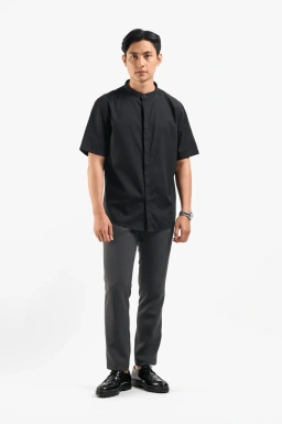 - Solid color fabric collarless shirt