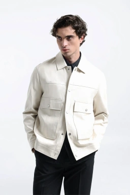 - Jaket multi saku dibuat dengan material faux leather