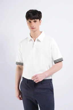 - Kemeja polo rajut yang memberi penampilan kasual
