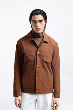 - Jaket multi saku dibuat dengan material tekstur seersucker