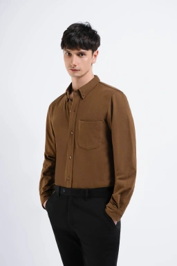 - Kemeja lengan panjang dengan material Katun poliester dengan fitting modern fit