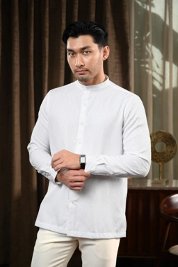 - Kemeja kerah tegak dengan material dobby tekstur