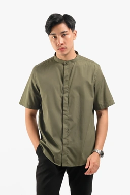 - Solid color fabric collarless shirt