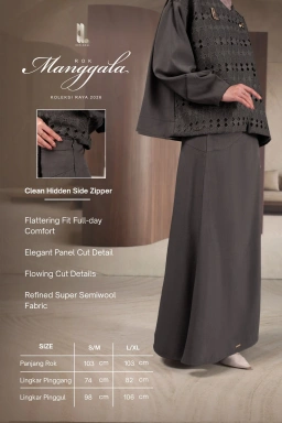 Manggala skirt menghadirkan tampilan yang anggun dengan bahan yang jatuh dan terkesan rapi.