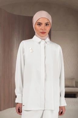 Kemeja basic dengan siluet clean memberi kesan formal dan elegan.