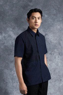 Kemeja ini dirancang dengan potongan Reguler Formal yang memberikan siluet tubuh tegap namun tetap nyaman untuk penggunaan sepanjang hari. Menampilkan sentuhan tegas melalui desain asimetris berbalut brokat square pada sisi kanan yang memberikan dimensi tekstur mewah dan eksklusif.