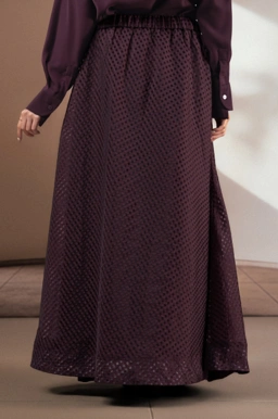 Skirt organza ini menghadirkan tampilan yang anggun dengan tekstur organza yang ringan dan memantulkan cahaya secara lembut.