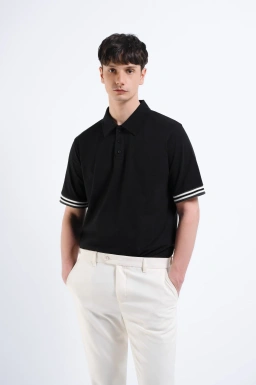- Kemeja polo rajut bertekstur dengan material katun rajut