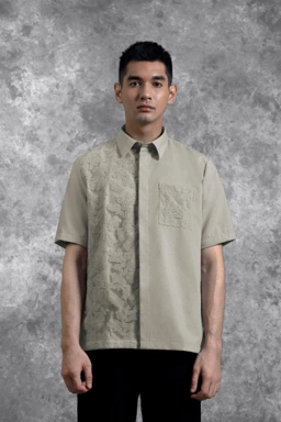 Kemeja ini dirancang dengan potongan Reguler Formal yang memberikan siluet rapi dan proposional. Kemeja ini memberikan sisi tegas melalui desain Asimetris yang dilapisi Brukat dengan sentuhan modern yang unik. Penggunaan Hidden Button memastikan tampilan depan menjadi clean dan minimalis, sementara detail patch pocket di dada kiri dan Lengan Pendek memperkuat karakter eksklusifnya. Kemeja ini sangat cocok untuk acara formal, perhelatan mewah, maupun momen spesial penting lainnya.