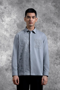 Kemeja ini dirancang dengan potongan Reguler Formal yang memberikan siluet rapi dan proposional. Kemeja ini memberikan sisi tegas melalui desain Asimetris yang dilapisi Brukat dengan sentuhan modern yang unik. Penggunaan Hidden Button memastikan tampilan depan menjadi clean dan minimalis, sementara detail patch pocket di dada kiri dan lengan panjang memperkuat karakter eksklusifnya. Kemeja ini sangat cocok untuk acara formal, perhelatan mewah, maupun momen spesial penting lainnya.