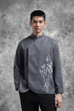 Kemeja Beskap Bermotif Tentrem Lengan Panjang Kelabu
