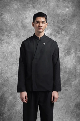 Hadir dengan Kerah Tegak untuk kesan tegas dan berwibawa, kemeja ini memberikan sisi tegas melalui detail Panel Depan Asimetris dengan sentuhan modern yang unik.